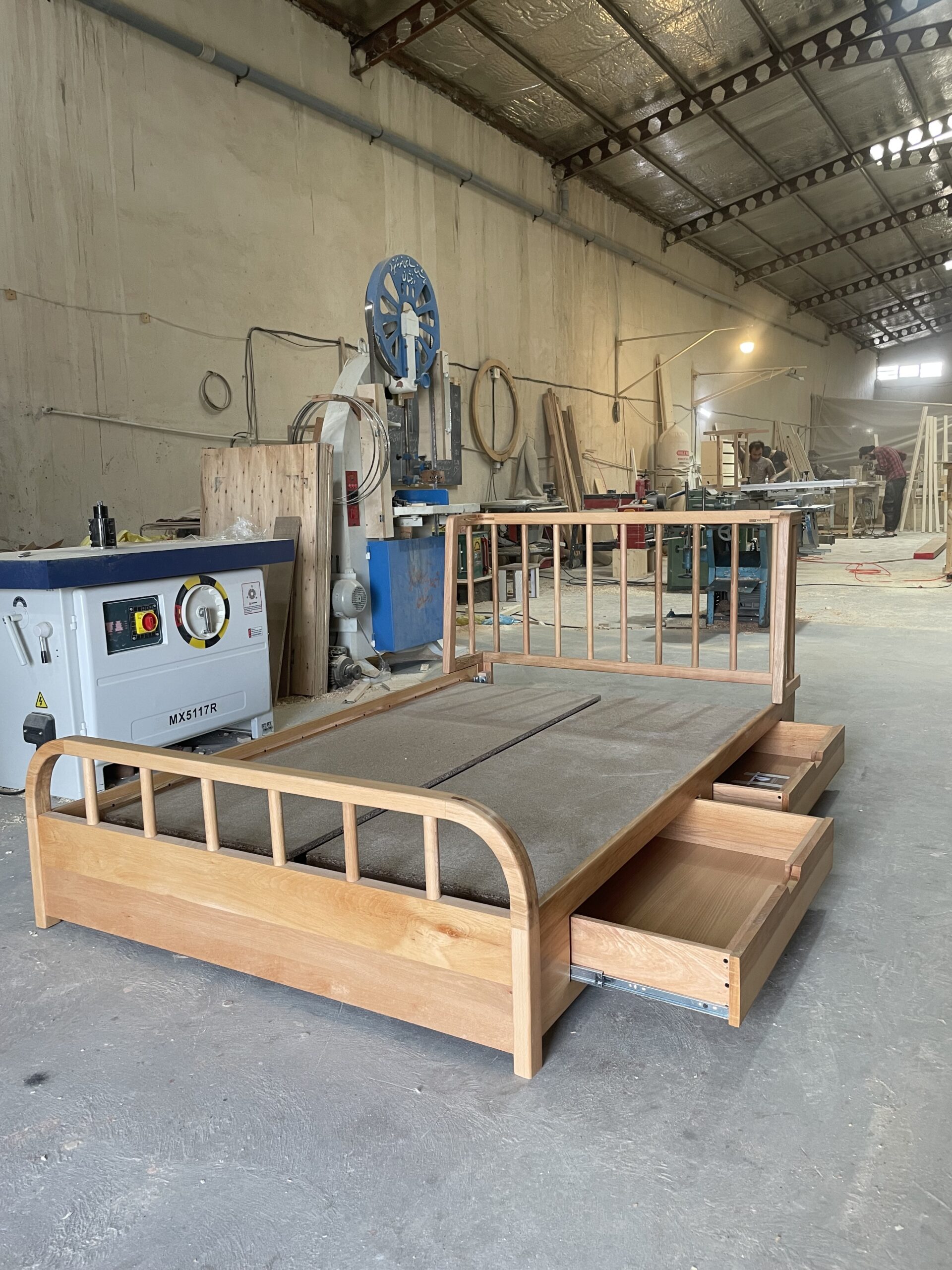 تختخواب برنو کشودار تولیدشده ازچوب طبیعی راش گرید یک وارداتی است