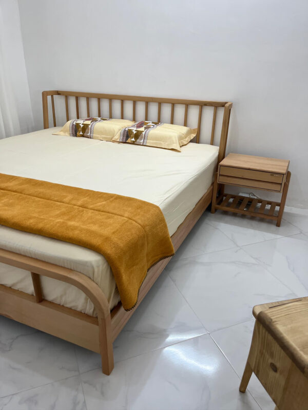 تخت خواب مدل برنو تماما از چوب مرغوب و طبیعی راش وارداتی گرید یک ساخته شده و تخت و کرسی آن یکپارچه است. در ساخت این تخت از هیچ ماده اولیهای جز چوب طبیعی (مانند نئوپان، MDF و یا دیگر کامپوزیتهای روکشدار) استفاده نشده است. تخت برنو طراحی ساده، مدرن و به دور از زوائد دارد. اتصالات و یراقها طوری مهندسی و طراحی شده است که تخت در طولانی مدت از فرم خارج نمیشود و به صدا نمیافتد. قطعات جدا از هم ارسال میشوند و نصب آن آسان است. این تخت با رنگ گیاهی و روغنی رمرس آلمانی رنگ شده است که هم لایهای محافظ برای چوب ایجاد میکند و هم طرح و نقش زیبای چوب طبیعی را به زیبایی به نمایش میگذارد و حس چوب طبیعی را برای شما به ارمغان میآورد. در صورت بروز آسیبهای سطحی ترمیم رنگ تخت به آسانی میسر خواهد بود.