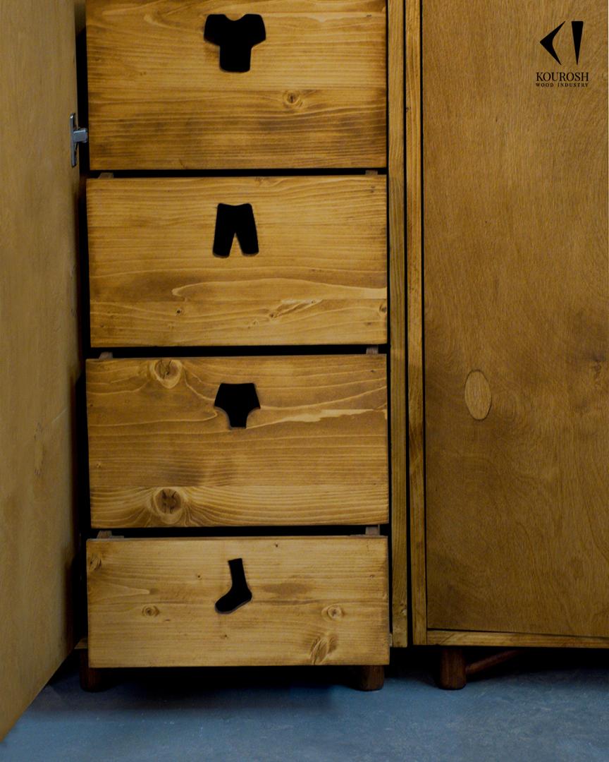بخش دوم شامل کمد تک درب همراه با چهار عدد کشو تو کار است .